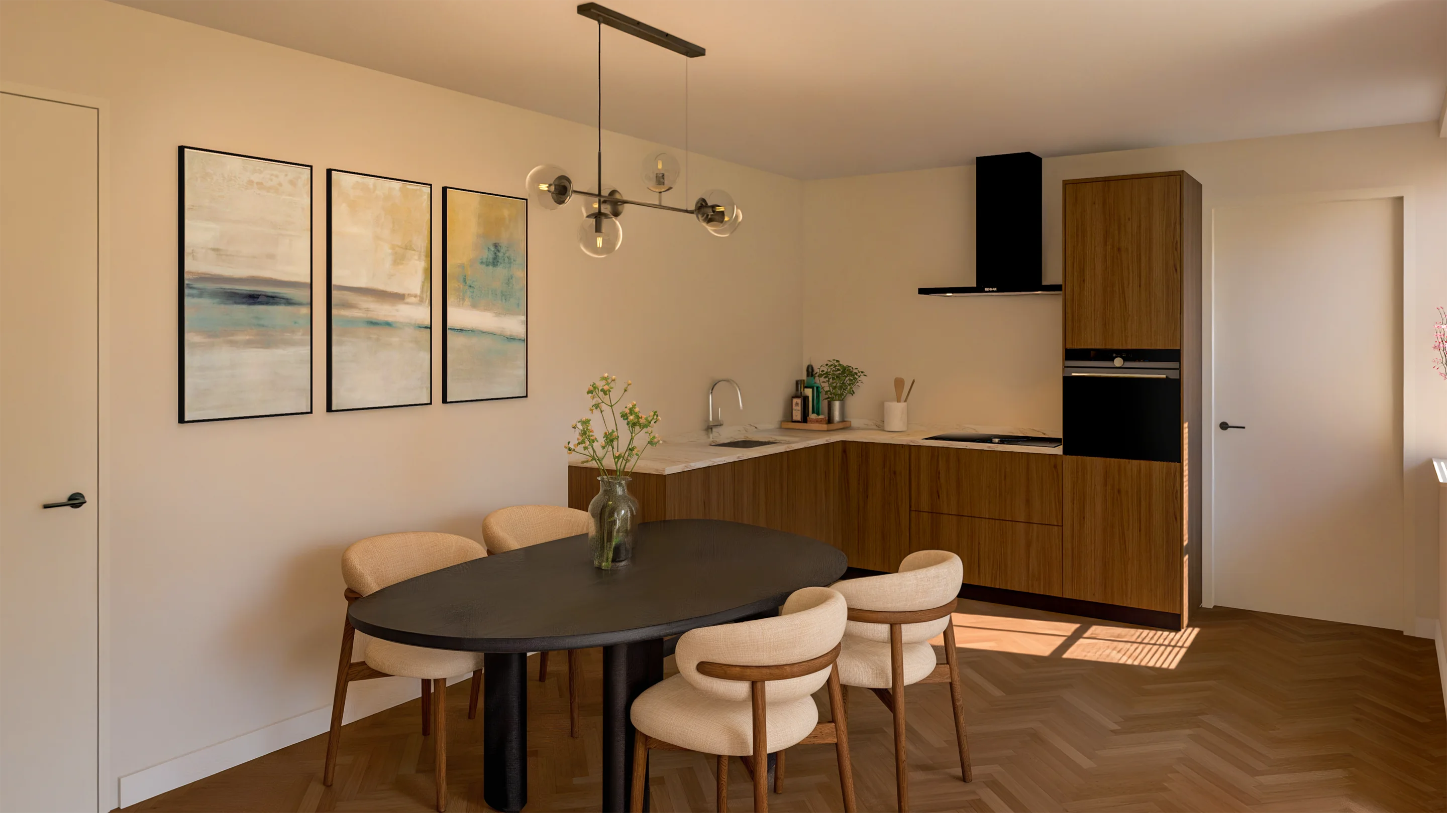 De appartementen in De Hoge Wei zijn niet voorzien van een keukeninrichting. Er worden wel voorzieningen voor uw keuken aangebracht zoals op de verkooptekeningen staat aangegeven. De basiskeukens in De Hoge Wei hebben een functionele indeling, passend bij het ontwerp van het betreffende woningtype.