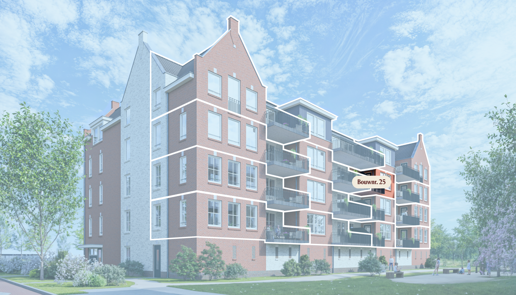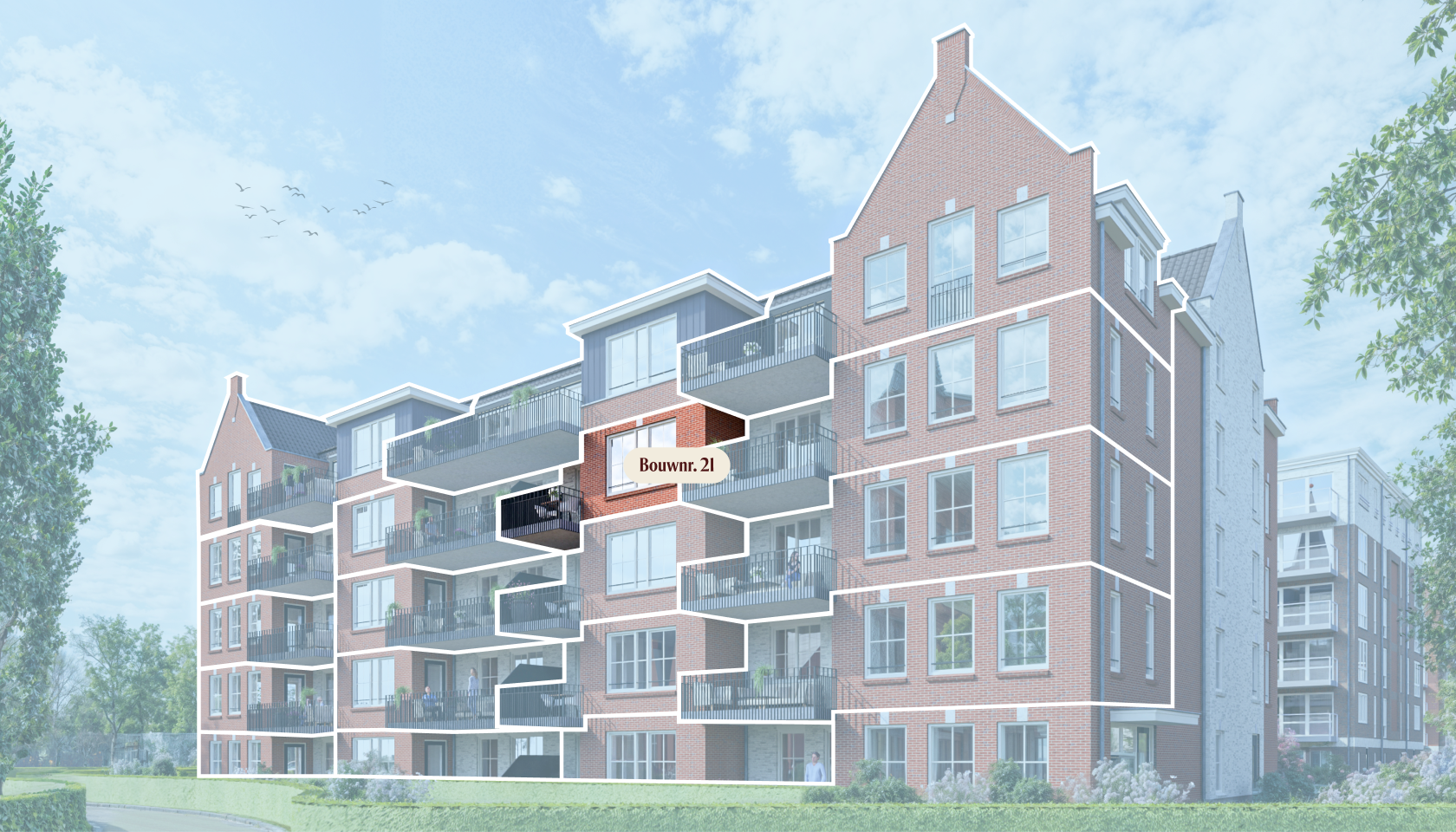| Bouwnummer | Type | Oppervlakte | Slaapkamers | Balkon/terras | Ligging | Verdieping | Koopprijs v.o.n. | Status | |